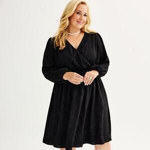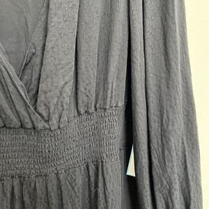 Draper James RSVP Plus 1X Smocked Waist Dress Surplice V-Neck Black Long Sleeve