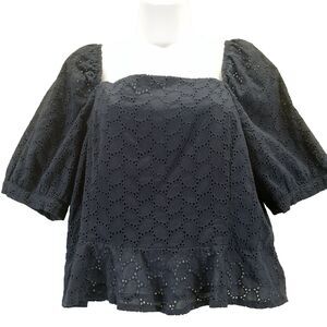 Draper James RSVP Puff-Sleeve Squareneck Top and Skirt Set in Navy Blue Size 16