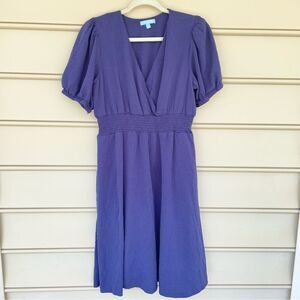 Draper James RSVP Purple Textured Puff Sleeve Midi Dress Size M