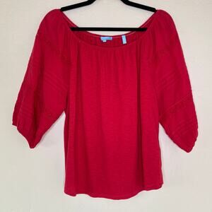 Draper James RSVP Red Balloon Sleeve Blouse Large