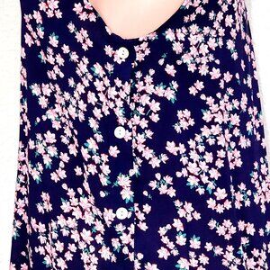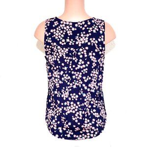 Draper James RSVP Silky Side Buttons Top Floral Sleeveless Navy Pink
