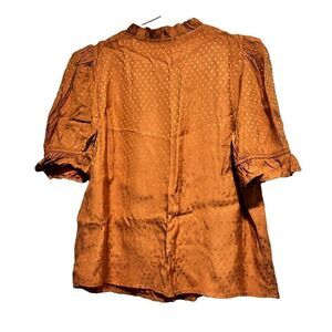 Draper James RSVP Womens Blouse Top Brown S Polka Dot V Neck 3/4 Puff Sleeve