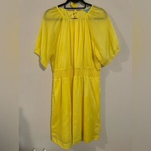 Draper James RSVP Women’s Midi Dress XL Yellow Linen Blend Smocked Waist