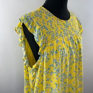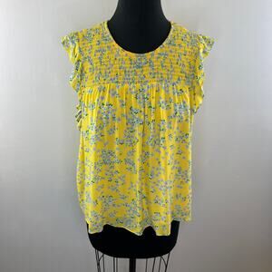 Draper James RSVP Yellow/Blue XL Top Floral Crew Neck Smocked Flutter Sleeve