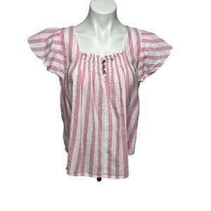 Draper James RSVP pink and white striped flutter sleeve smock top size M