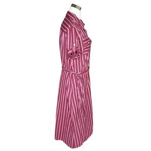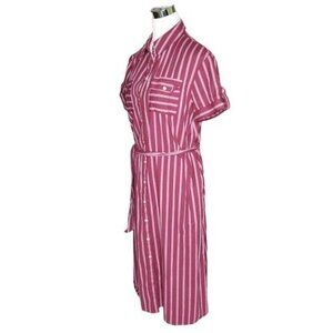 Draper James Red Striped Belted Shirt Dress Size M Excellent