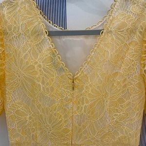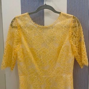 Darling Citron yellow lace Draper James midi dress. Perfect dress for summer wedding or luncheon!
