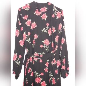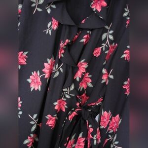Draper James Rsvp Floral Black and Red Wrap Tie Women's Rayon Dress Size Large