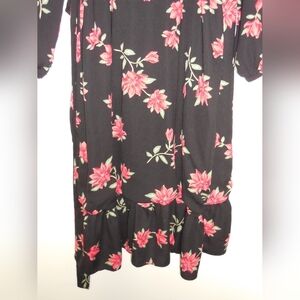 excellent preowned condition Draper James Rsvp Floral Black and Red Wrap Tie Women's Rayon Dress with ruffles Size Large. Elegant women's dress featuring a striking black and red floral design. Perfect for any occasion.