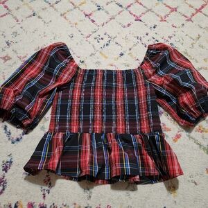 💘 Draper James Rsvp Plaid Smocked Peplum Top