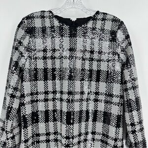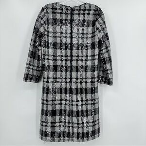 Draper James Sequin Sheath Dress Plaid Black White Size 12