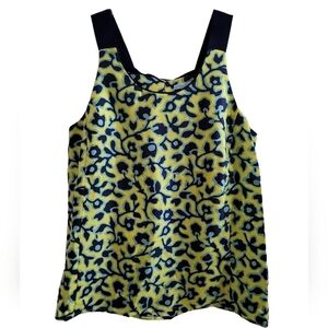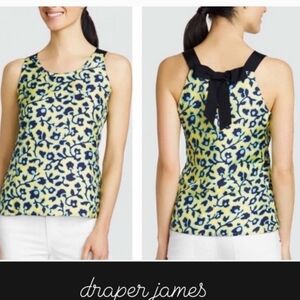 Draper James Silk Floral Patterned Tank. Lime Green with Navy floral. Grosgrain Straps and Bow on back. Nice pre-owned condition, no stains or holes.