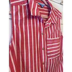 Draper James Size LG Sleeveless Button Up top Red with White Stripes Gold Button