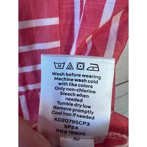 The Draper James Size LG Sleeveless Button Up top in Red with White Stripes and Gold Button is a stylish and versatile piece perfect for a casual occasion. This top features a classic collared neckline and a regular fit, making it a comfortable and flattering option for women. The red and white striped pattern adds a touch of sophistication, while the gold button accents give it a chic finish. Easy to care for with machine washable instructions, this top is ideal for the summer and spring seasons, adding a pop of color to your wardrobe.