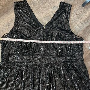 This listing is for a NWT's Draper James Sleeveless V-Neck Sequin Dress, black, in size 26W.