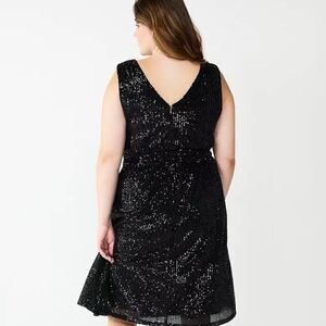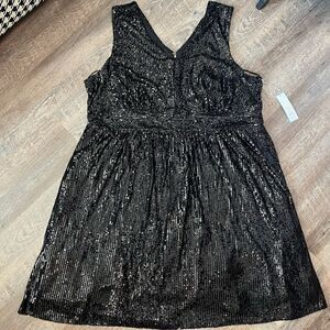 This listing is for a NWT's Draper James Sleeveless V-Neck Sequin Dress, black, in size 26W.