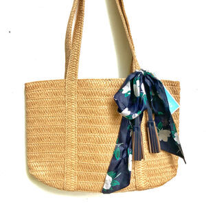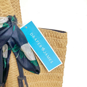 Draper James Straw Tote Bag NWT | Floral Scarf Coastal Summer Bag Navy Interior