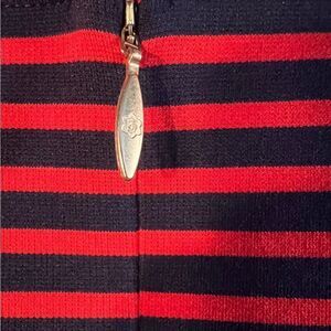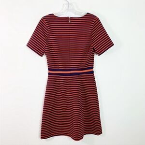 Draper James Stripe Ponte Knit A-Line Dress V-Neck Stretch Nassau Navy and Red