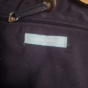 Chic tan woven tote by Draper James. Features a stylish black scarf accent. Perfect for everyday elegance.