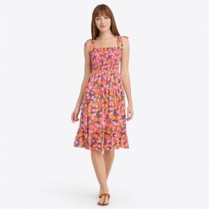 Draper James Taylor Blossom Smocked Orange Printed Midi Dress Size Medium