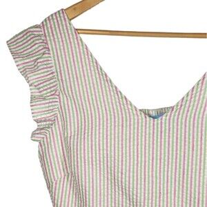Draper James Top Flutter Ruffle Sleeve Peplum Pink Green White Stripe Seersucker Preppy Lightweight