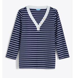 Draper James V-Neck Puff Sleeve Shirt in Nassau Navy Mariner Stripe Size XL