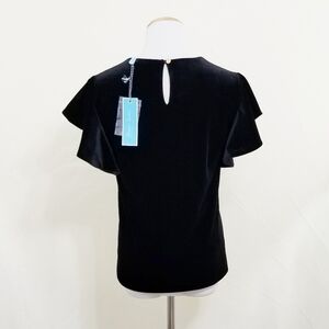 Draper James Velvet flutter sleeve blouse black 0 NWT