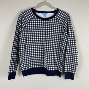 Draper James White Navy Blue Gingham Natalie Long Sleeve Sweatshirt Size Small