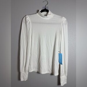 This sophisticated white blouse from Draper James features elegant puff sleeves offering a refined and polished look. The fitted design accentuates the silhouette, making it a versatile piece for both formal and casual occasions. Crafted from high-quality materials, it ensures comfort and style throughout the day.