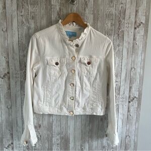 Draper James White Ruffle Jean Jacket Medium