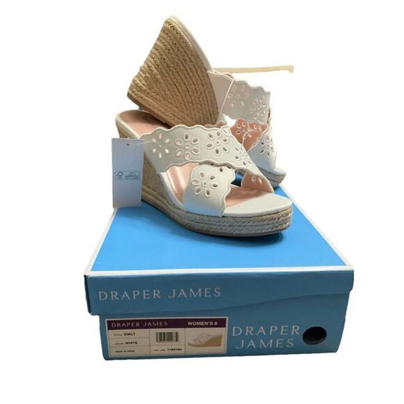 Draper James White Wedge Eyelet Fabric Sandal Ladies Heel Size 8 NIB