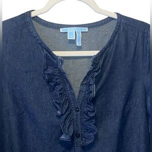 Draper James Wm’s Sz 4 Indigo Dark Wash Chambray Denim Shift Ruffle Dress
