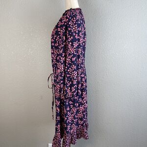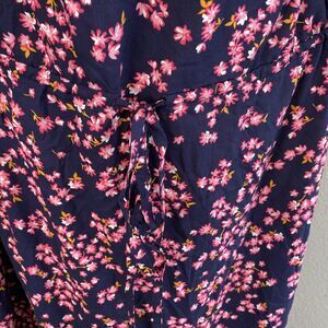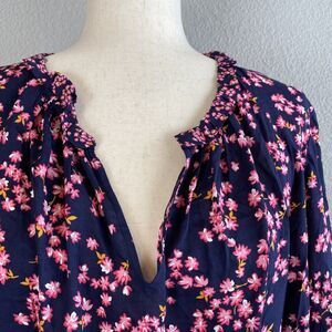 Draper James Women Dress 2X Plus Lucinda Popover Navy Cherry Blossom Long Sleeve
