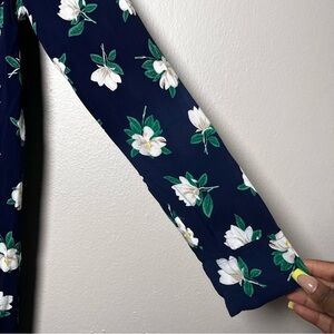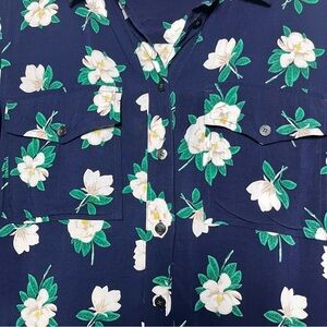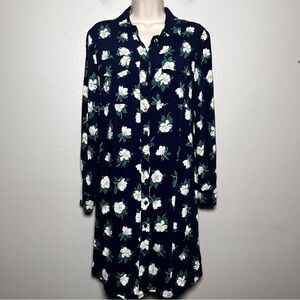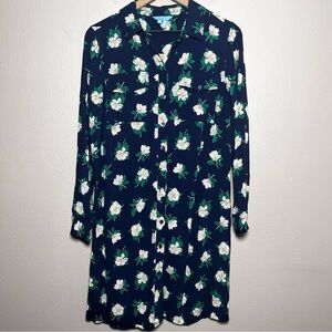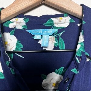 Draper James Women Shirt Dress 8 Navy Blue Button Front Floral Casual