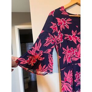 Draper James Women's 8 Flared Elbow Sleeve Shift Dress Navy Pink Preppy Coastal