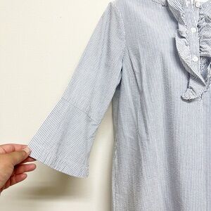 Draper James Womens Blue White Striped Seersucker Ruffle Sleeve Collar Shift Dress Size 8