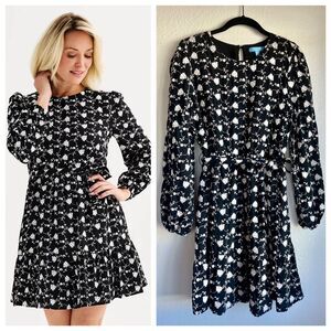 Draper James Women's Embroidered Long Sleeve Short Dress in Black & White Size M