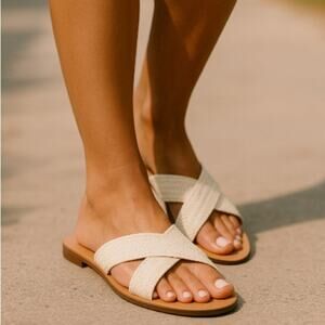 Elegant White sandals with woven straps. Ideal for casual wear.