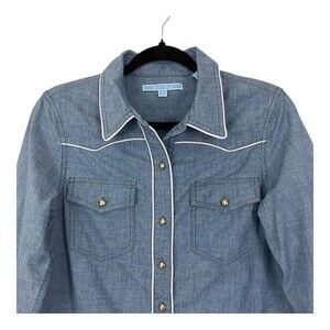 Draper James Womens Size Small Western Piped Chambray Button Down Shirt