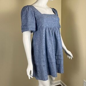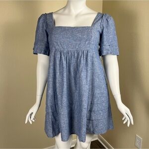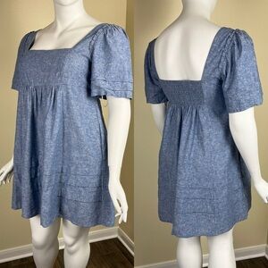 Draper James Womens Size XL Linen Cotton Chambray Mini Babydoll NEW Dress Ruffle