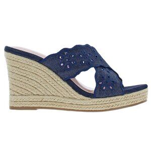 Draper James Womens Wedge Sandal Navy Eyelet Boho Cruise Open Toe Jute Heel NIB