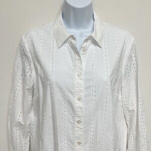 Draper James Womens White Button Down Eyelet Flounce Skirt Shirtdress Size 8