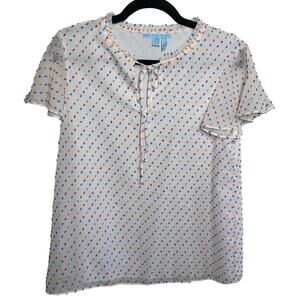 Draper James Women's White Dot Flutter Sleeve Blouse Size Medium Rainbow Polka