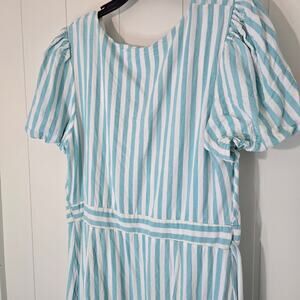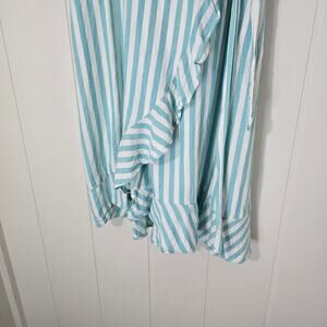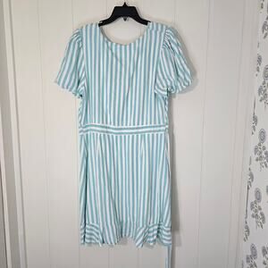 Draper James Wrap Dress Blue Green Ruffle Puff Sleeve Size XL