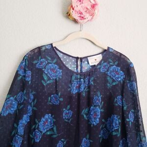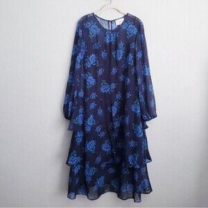 Draper James X Eloquii Blue Floral Ruffle Tiered Long Sleeve Dress