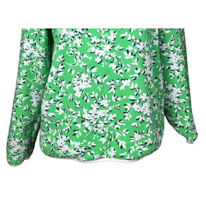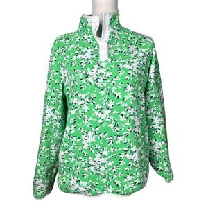 Draper James X Lands End Pullover Size Small Snap Sweatshirt Green Floral Preppy