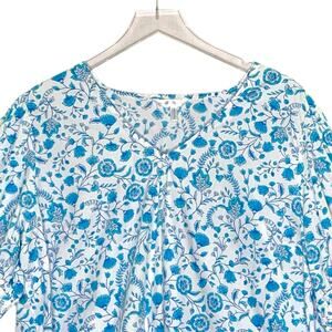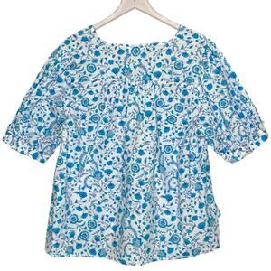 Draper James XL Heidi V-Neck Puff Short Sleeve Top Blue Floral *flaw