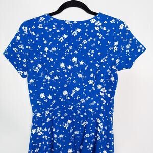 Draper James XSmall XS Blue White Floral Printed Fit and Flare Ponte Dress VNeck