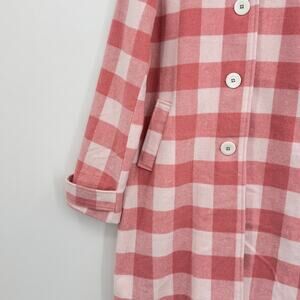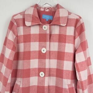 Draper James coat women's L gingham plaid button front collared pink white NEW
