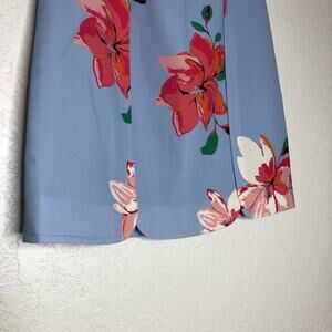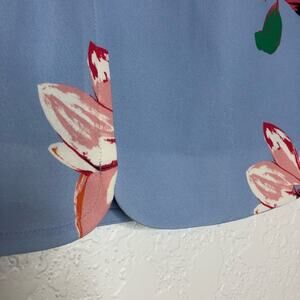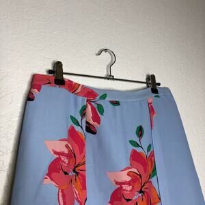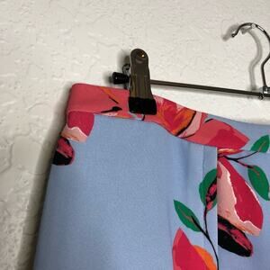 Draper James light blue pink floral scalloped hem skirt. Back zipper. Scalloped hemline. Fully lined. Size 8. Excellent preowned condition. A couple of tiny snags.
